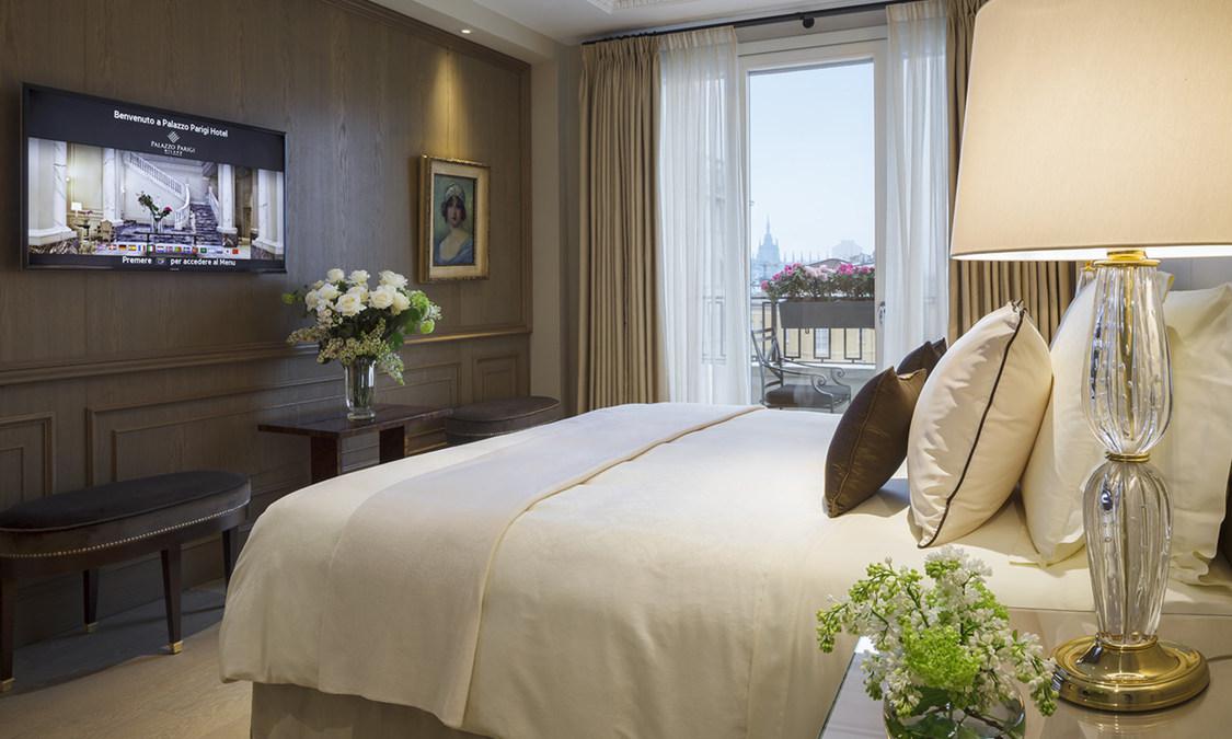 Palazzo Parigi Hotel & Grand Spa Milano酒店位于时尚区的中心。这家奢华的酒店提供带阳台或露台的空调客房和餐厅。Palazzo Parigi酒店的典雅客房配有免费无线网络连接、现代科技设施、平面电视、迷你吧以及镶木/大理石地板。套房设有休息区。餐厅供应当地特色菜。客人可以在Caffè Parigi蛋糕店品尝到地道的意大利甜点。酒店可应要求提供自助早餐。酒店距离米兰主教座堂(Milan Cathedral)有1.5公里,距离米兰的图拉蒂地铁站(Turati Metro Station)有500米,距离米兰-马尔彭萨机场(Malpensa Airport)有40分钟车程。