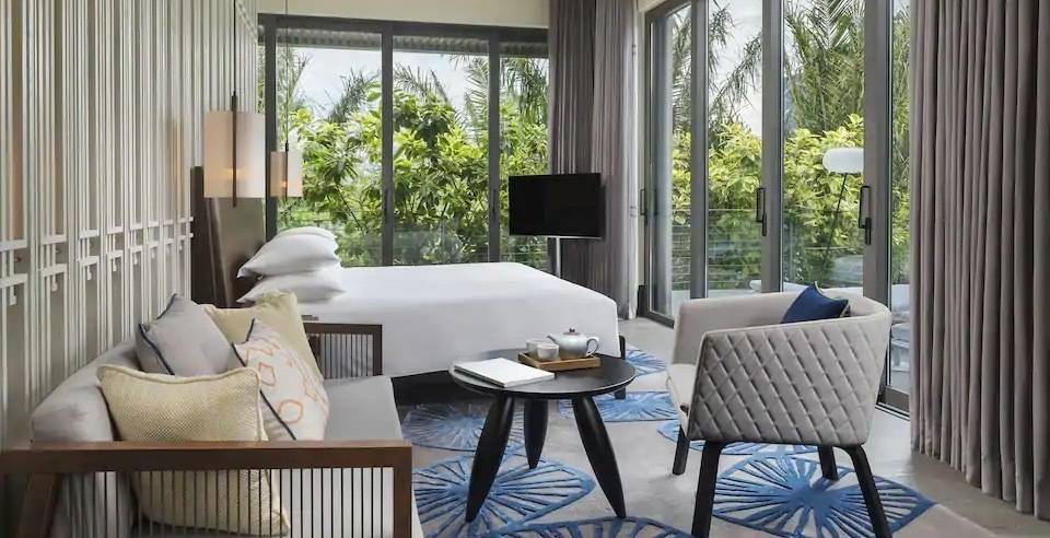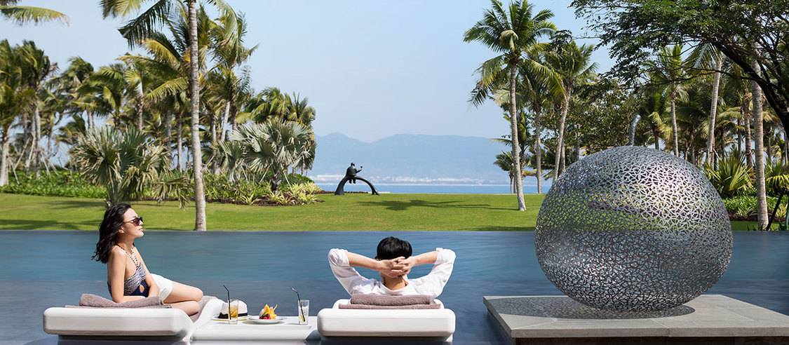 彷如海边私人府邸,三亚太阳湾柏悦酒店拥有私家海滩,距离著名的亚龙湾仅几分钟之遥。与所有柏悦酒店一样,致力为客人提供巧妙细致的个人化服务 — 亲切、周到、体贴、细心,满足品味不凡的客人要求 —为您营造在三亚的美时美刻。 此外,17栋柏悦别墅都设有专属管家以更贴心的安排照顾客人所需,不论是在花园中安排烧烤、儿童游泳课程、茶道或是清晨的鱼市之行,均会妥善安排。酒店的餐饮场所 — 悦厅、品悦、沁园、池畔吧、悦海、观景台及茶苑 — 均采用当地优质应季食材,精心炮制一系列正宗中西佳肴,辅以高雅舒适的用餐环境,诚意为客人呈现不一样的餐饮艺术。在这里,放松心情有着多种独特的定义。酒店的5个独立泳池满足各类泳者需求,在凯悦悦趣营,活力充沛的小朋友们可以在这里畅享泳乐。水上运动爱好者不妨选择百福湾,百福湾紧邻太阳湾,是酒店的又一私家海湾,这里拥有理想的潜水水域,无论是潜水,还是划船或皮划艇,均可尽兴而归。与此同时,偏爱静谧方式的您可前往酒店水疗中心享用各式传统疗法,尽情放松身心;或到健身中心塑体强身;或参加瑜伽工作室的课程;或是在室外泳池中消暑怡神。