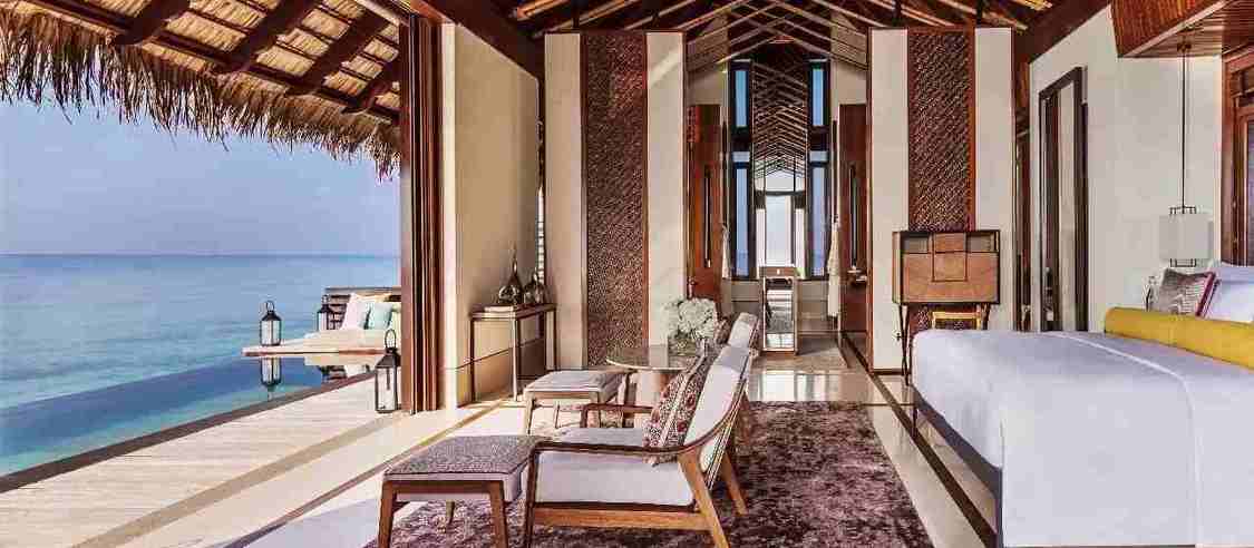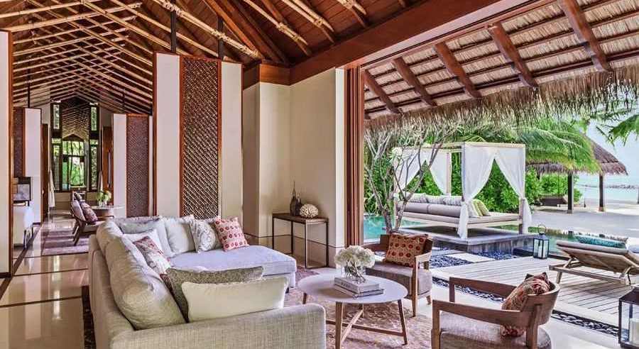 马尔代夫瑞提拉岛度假村(One&Only Reethi Rah),酒店位于马尔代夫的北马累环礁(North Male Atoll),绝对是情调奢华型超5星级酒店的典型代表,酒店的设施不仅是最顶级的,其绝美的意境也是绝对无法复制的,无穷无尽的白色沙滩,温柔的金色阳光,碎玉般透彻的海水和点缀其间的泻湖,毫不夸张地说,没有去过这里,相当于没有见到真正的人间天堂。瑞提拉岛是马尔代夫最大的岛屿之一,度假村拥有客房123间,全部都以独立别墅设计,不但拥有豪华的房间感觉,而且拥有完善的客房设施。