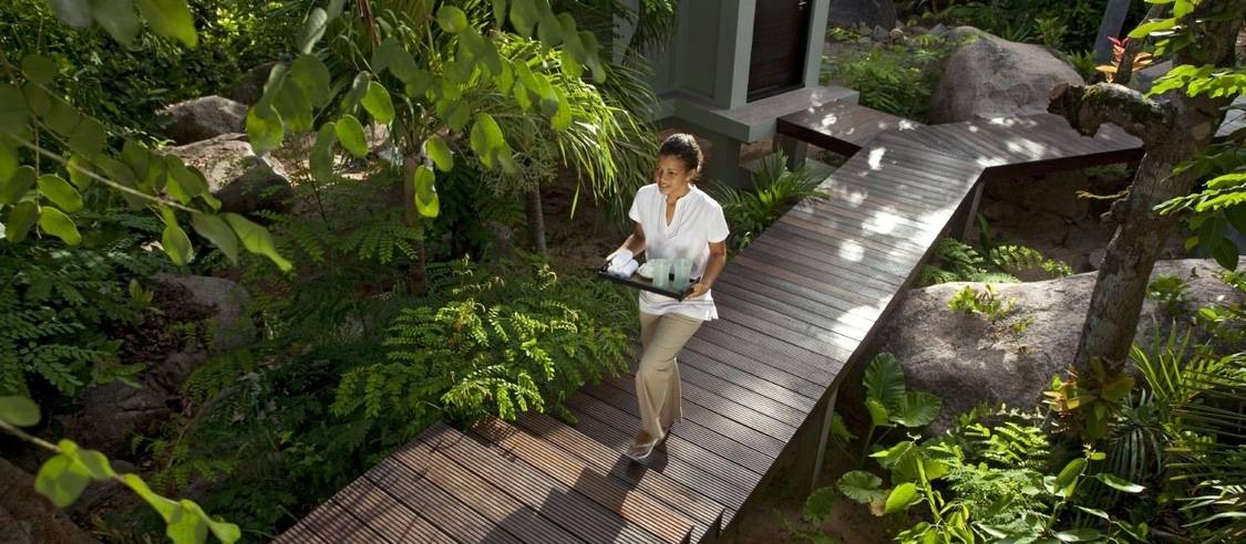 Raffles Praslin酒店位于塞舌尔群岛普拉兰岛的东北角,从Mahé国际机场搭乘15分钟的飞机,或乘坐渡轮45分钟即可到达塞舌尔群岛的第二大花岗岩岛——普拉兰岛。