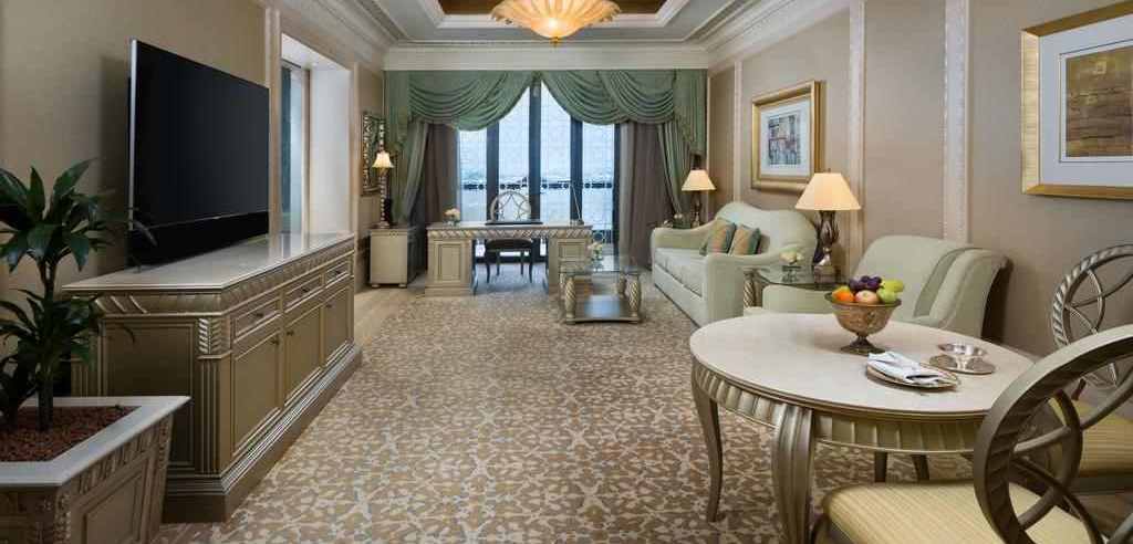 Emirates Palace Hotel酒店位于阿拉伯湾海岸,俯瞰着自家的私人天然海湾,坐落于1.3公里的私人海滩,提供豪华的住宿、最先进的科技设备以及14个餐饮场所。酒店设有2个大型游泳池以及提供按摩和各种全身理疗服务的Spa。Emirates Palace酒店还设有健身中心和独立的儿童游乐区。Emirates Palace Hotel酒店距离阿布扎比国际机场和阿布扎比国家展览中心有25分钟车程,距离Marina Mall商场和民俗文化村(Heritage Village)有不到7分钟车程。