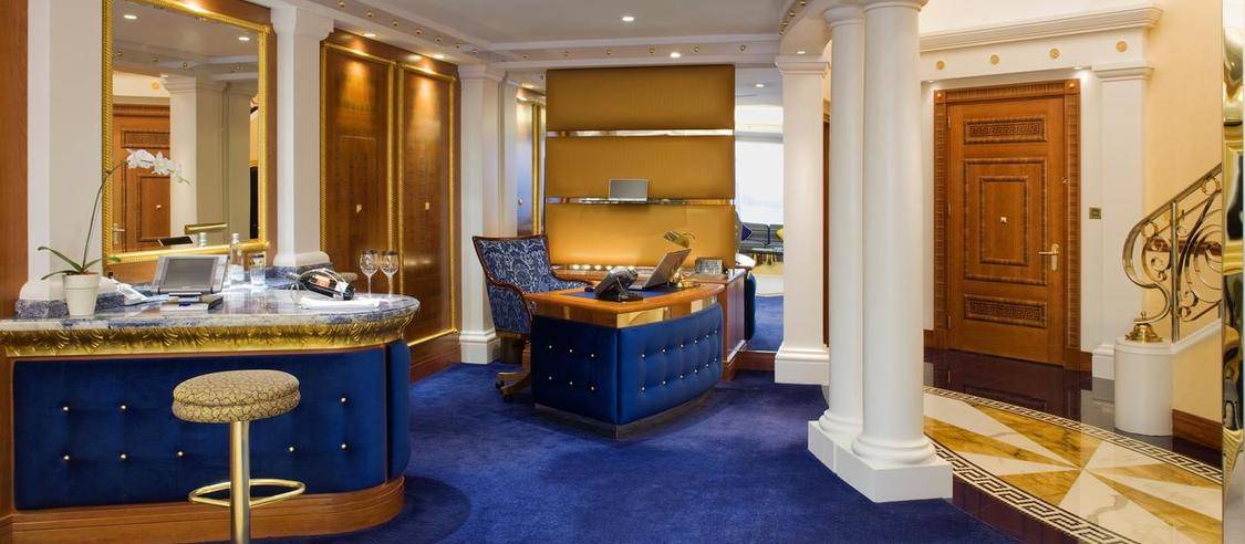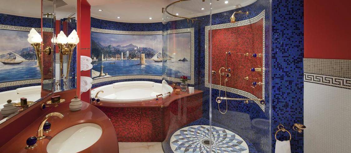 迪拜卓美亚帆船酒店拥有独特的帆船造型,不仅是一处迷人的地标,已俨然成为现代迪拜的象征。客人亲见这一迷人建筑时已觉无限惊奇,但真正让卓美亚帆船酒店卓然不群的是酒店提供的高品质服务。酒店多次荣膺世界最豪华酒店殊荣。卓美亚帆船酒店内处处为客人提供顶级的服务与设施,酒店拥有世界上最壮观的劳斯莱斯车队,客人可以乘坐专职司机驾驶的劳斯莱斯,或者乘坐直升机潇洒直达酒店。卓美亚帆船酒店全部为复式套房,酒店套房内登记入住服务、每一层的专属接待处以及全天候提供悉心关怀的高素质管家,可确保您在整个入住期间享受到顶级的个性化服务。