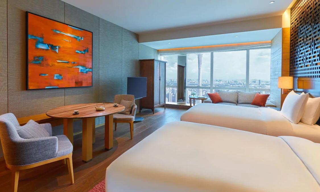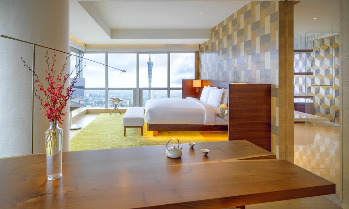 酒店宽敞的客房均设有全景落地窗,可一览城市景观及珠江夜景。客房拥有配备多媒体扩展口的液晶电视机,意式咖啡机,私人保险箱,迷你吧,高速无线及有线网络。干湿分离的卫浴设计,宽敞的浴室配有浴缸和花洒淋浴。