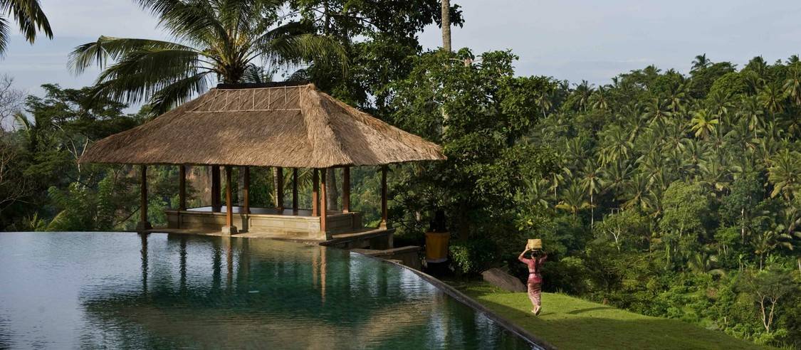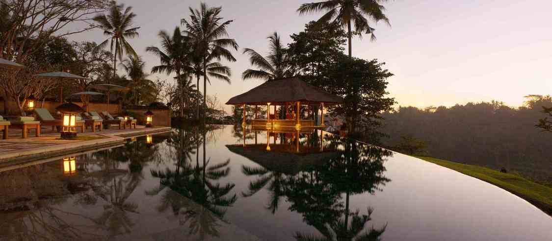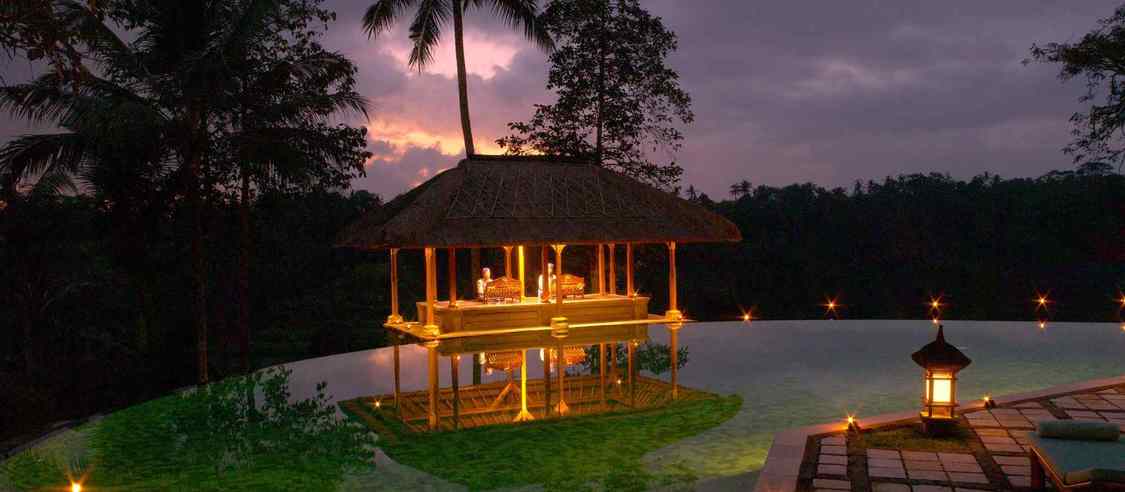 安缦达瑞度假酒店坐落于翠绿的乌布山区,正处在巴厘岛中央艺术村,距离乌布市中心不过10分钟的车程。Amandari意为“平和的灵魂”,正是店如其名,俏生生地立于爱咏河谷上空的悬崖边缘,把宁静的爱咏河与繁茂的绿色稻田尽收眼底。 酒店深得“低调奢华”的真意,全部取材于当地,设计成以城墙围绕的巴厘岛传统村落,这里没有咄咄逼人的气势,而是用最原始的元素,呈现出纯粹的巴厘岛印象。