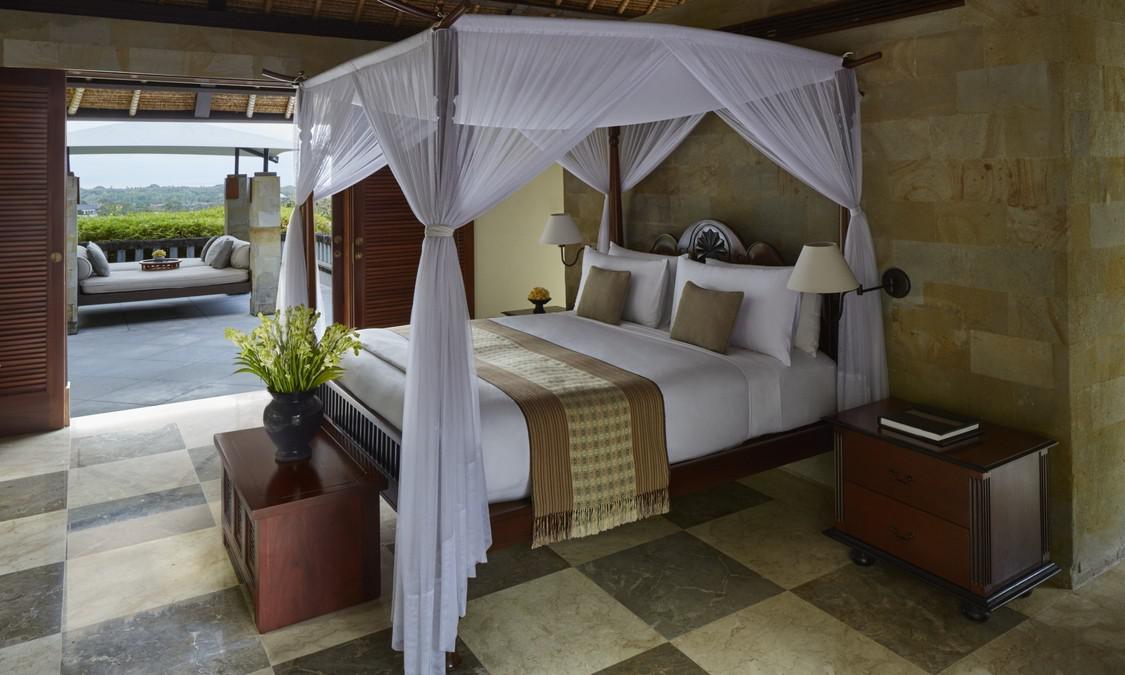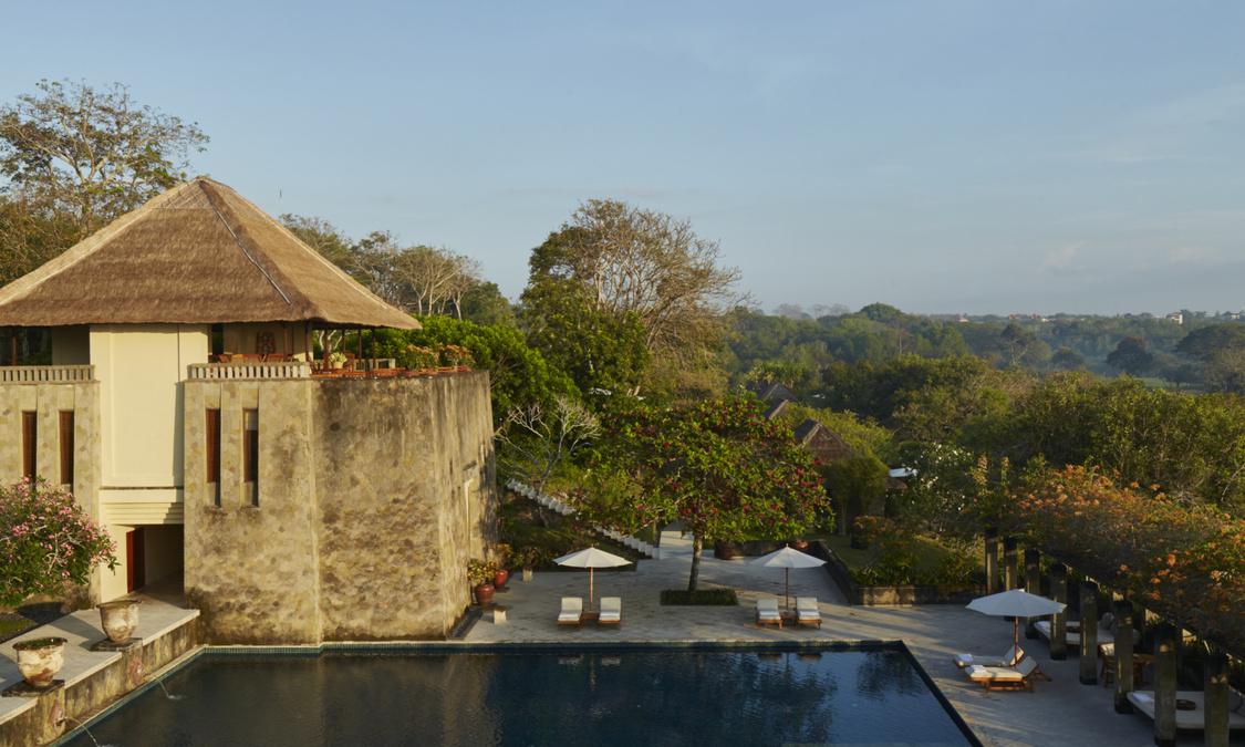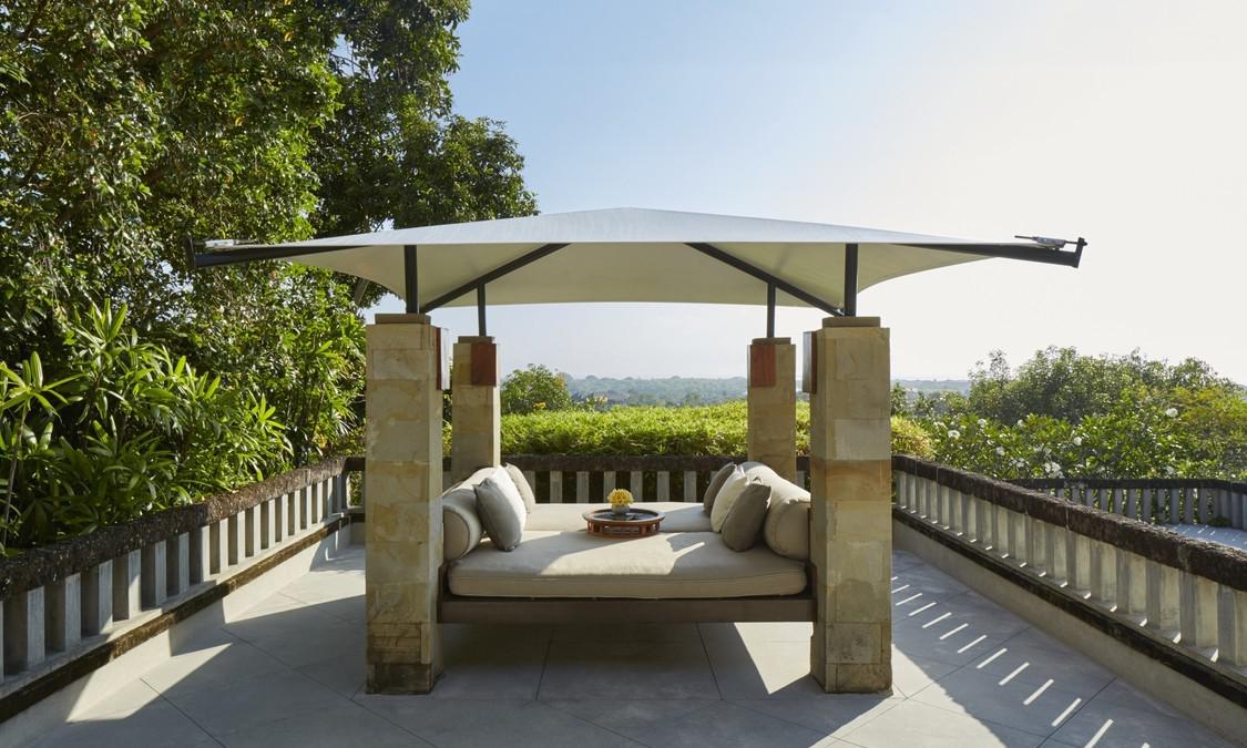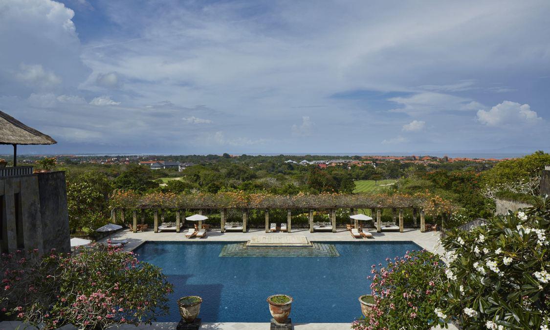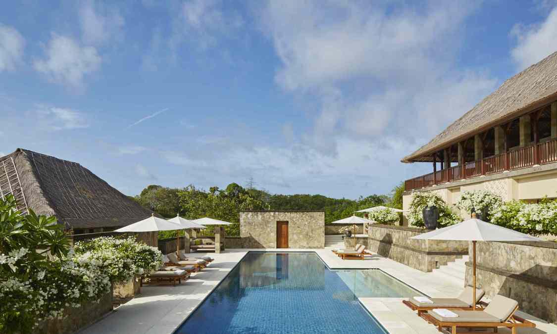 AMAN VILLAS AT NUSA DUA度假村位于顶级酒店林立的努萨杜瓦,却独享努萨杜瓦海滩中最秀美迷人的一段;这里海水极度湛蓝,沙滩细腻洁白,情境私密非常。整个建筑依着一座绿意浓浓的小丘而建,壮丽的石筑主建筑置于山势之上,由宽大的阶梯向下方的花园泳池及私人海滩绵延。酒店邻近 Bali National Golf Resort,这是名列亚洲前五的高尔夫球场;除此之外,酒店还临近 Kuta, Sanur, Legian及 Seminyak等巴厘岛夜生活及购物中心,非常便利。