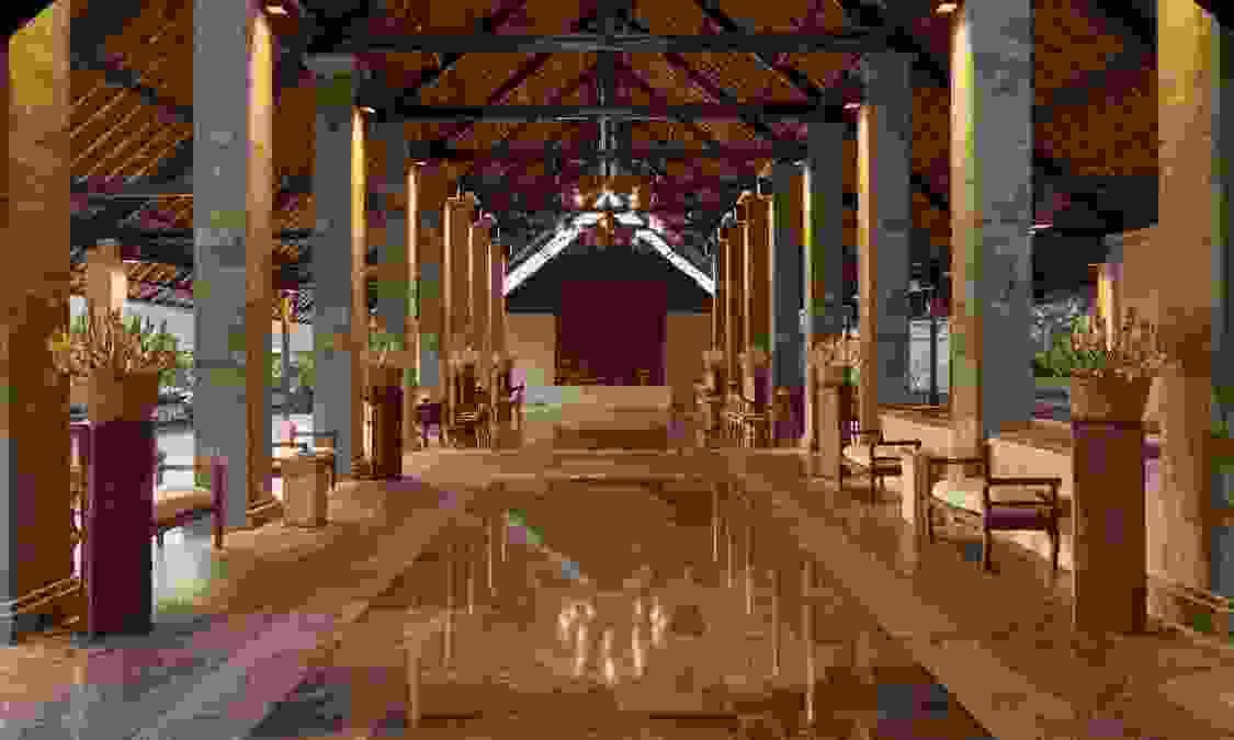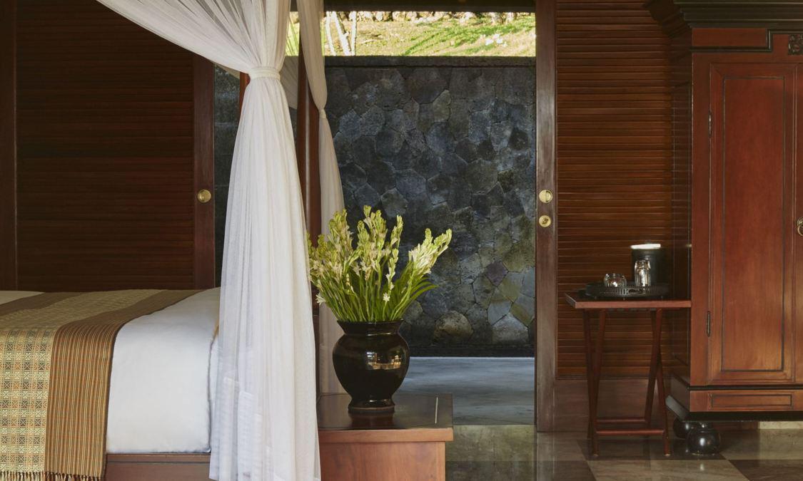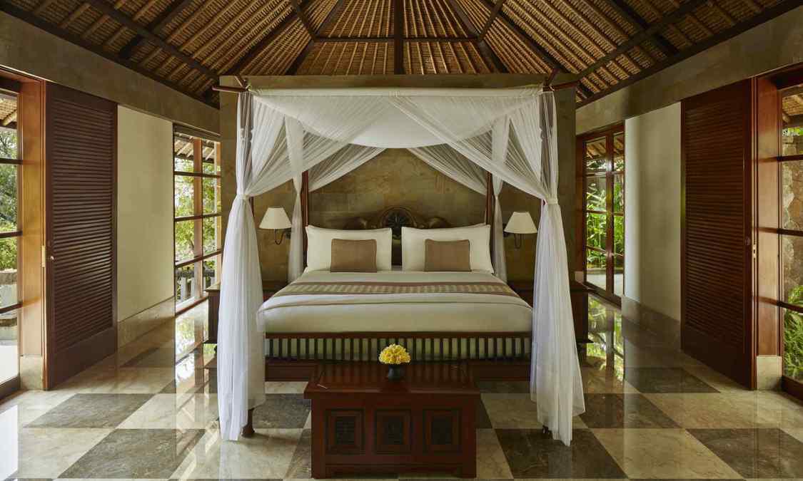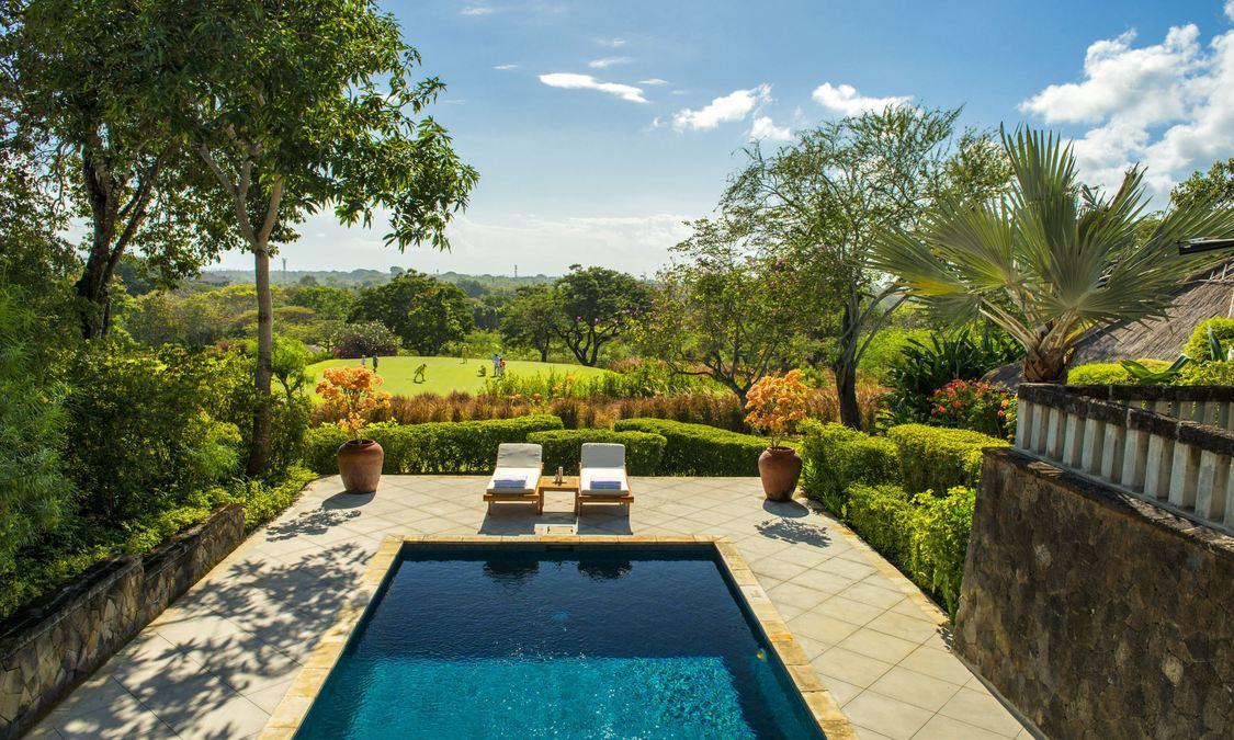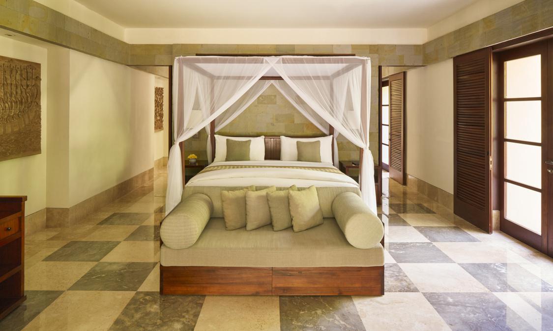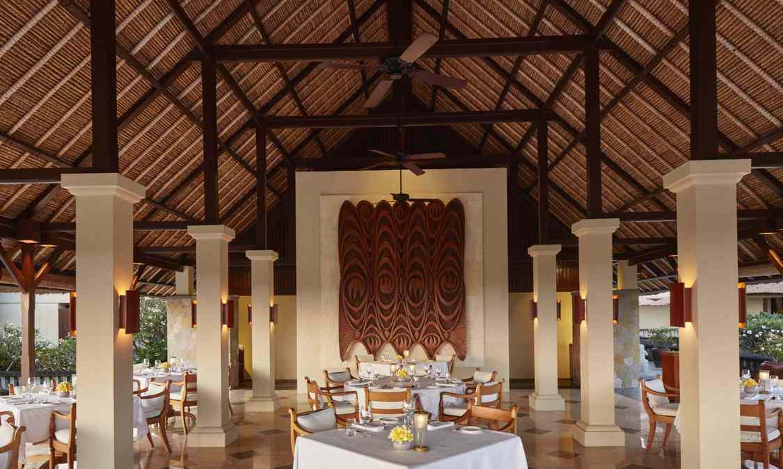 AMAN VILLAS AT NUSA DUA度假村位于顶级酒店林立的努萨杜瓦,却独享努萨杜瓦海滩中最秀美迷人的一段;这里海水极度湛蓝,沙滩细腻洁白,情境私密非常。整个建筑依着一座绿意浓浓的小丘而建,壮丽的石筑主建筑置于山势之上,由宽大的阶梯向下方的花园泳池及私人海滩绵延。酒店邻近 Bali National Golf Resort,这是名列亚洲前五的高尔夫球场;除此之外,酒店还临近 Kuta, Sanur, Legian及 Seminyak等巴厘岛夜生活及购物中心,非常便利。
