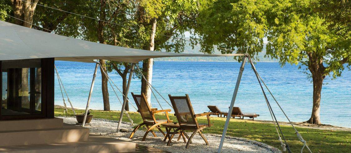 比利时设计师让-米歇尔•加希(Jean-Michel Gathy)专擅酒店设计,他曾为安缦居设计了三个度假村,Amanwana是其中之一,也是他的得意之作。就像Kevin之前介绍时说的:“在安缦瓦那,你不会有离开丛林的感觉。”崇尚与自然融合是安缦居度假村设计的基本态度,在这里也不会有墙或者栅栏,两排白色的帐篷和主体餐厅等屈指可数的建筑隐藏在茂密的原生大树之中。在白天,这些大树枝叶的影子投射在帐顶和草地上,玩起了光线的游戏。