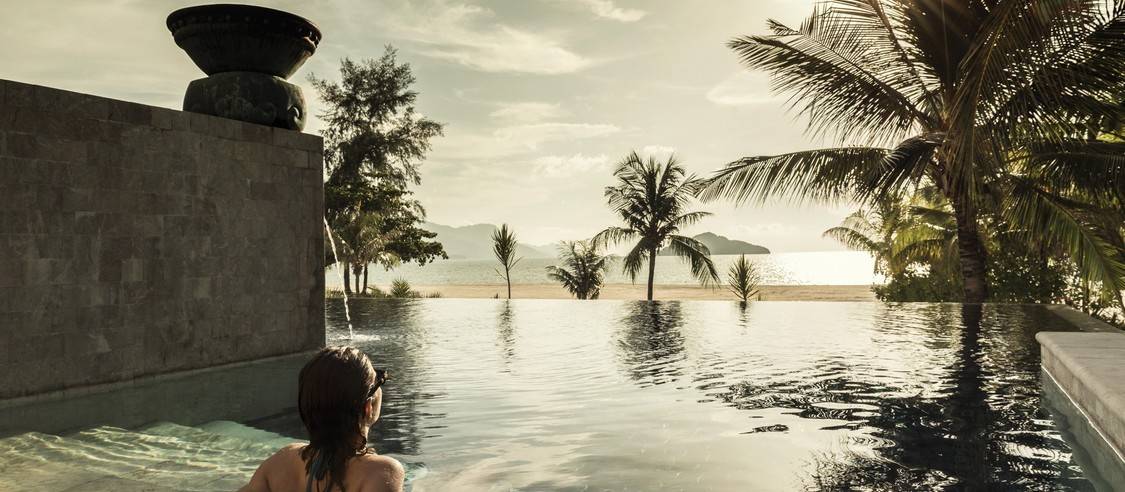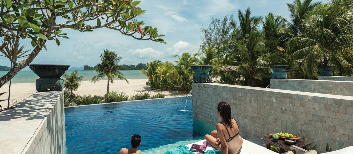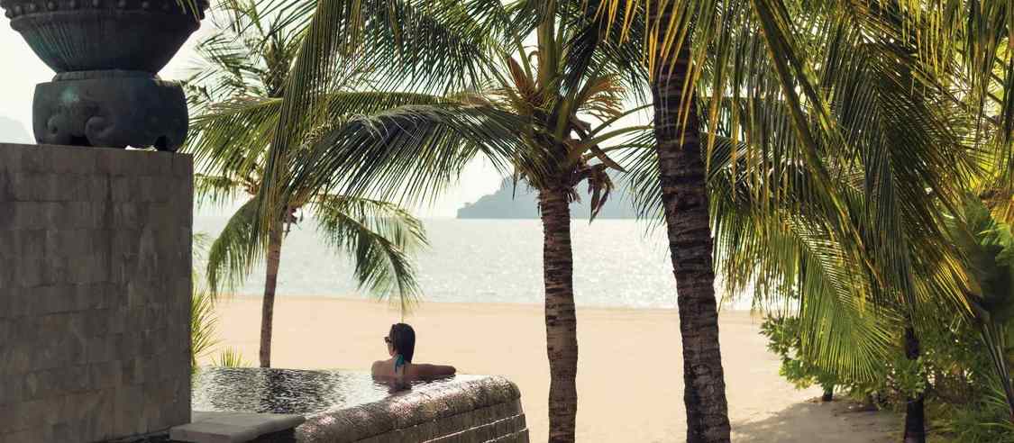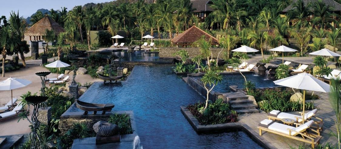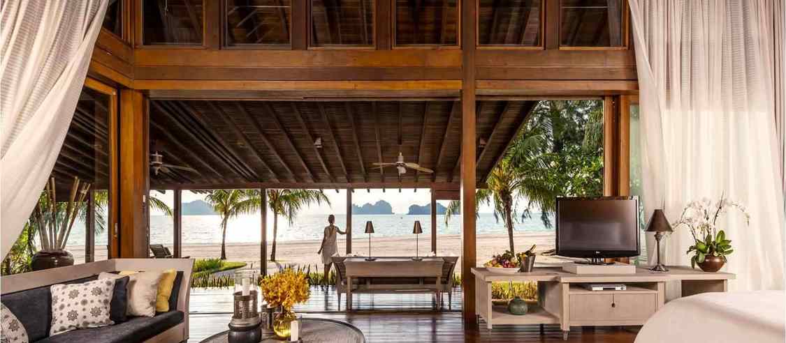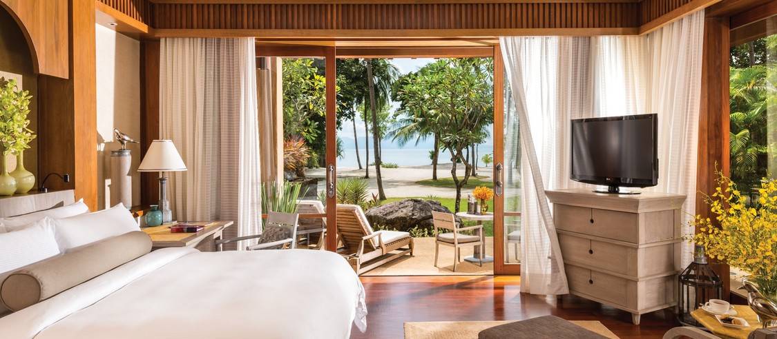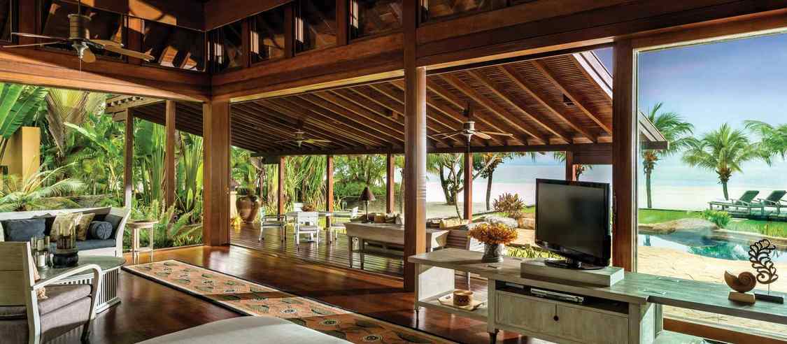 Four Seaso Langkawi兰卡威四季度假村,位于兰卡威丹绒鲁的北部海角﹐周边漫延着1.5公里的白沙海滩﹐背靠悬崖及雨林山脉﹐向西面对安曼达海。酒店一切设施都很奢华,但是又低调内敛,超低的客房密度使客人的假期拥有绝密的私人空间。酒店的建筑风格融合了多种文化元素,混搭了亚洲式,印度式和阿拉伯式的风情。高贵和现代的内饰突显了马来西亚本地的美学特点和艺术作品。映衬在自然的环境之中,整个酒店采用中性色调并搭配了异域情调的木艺和石艺布置。