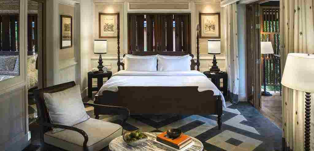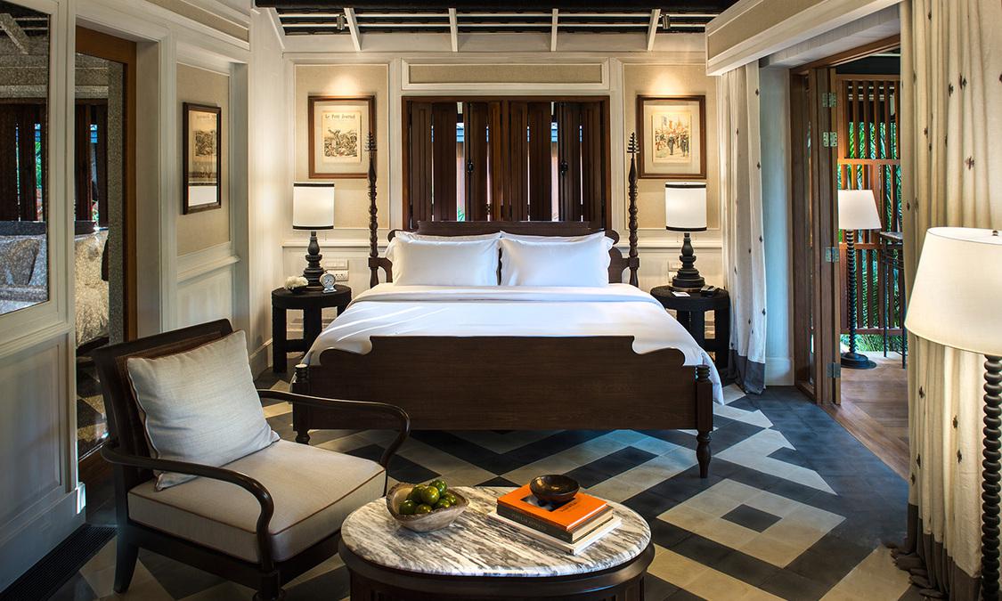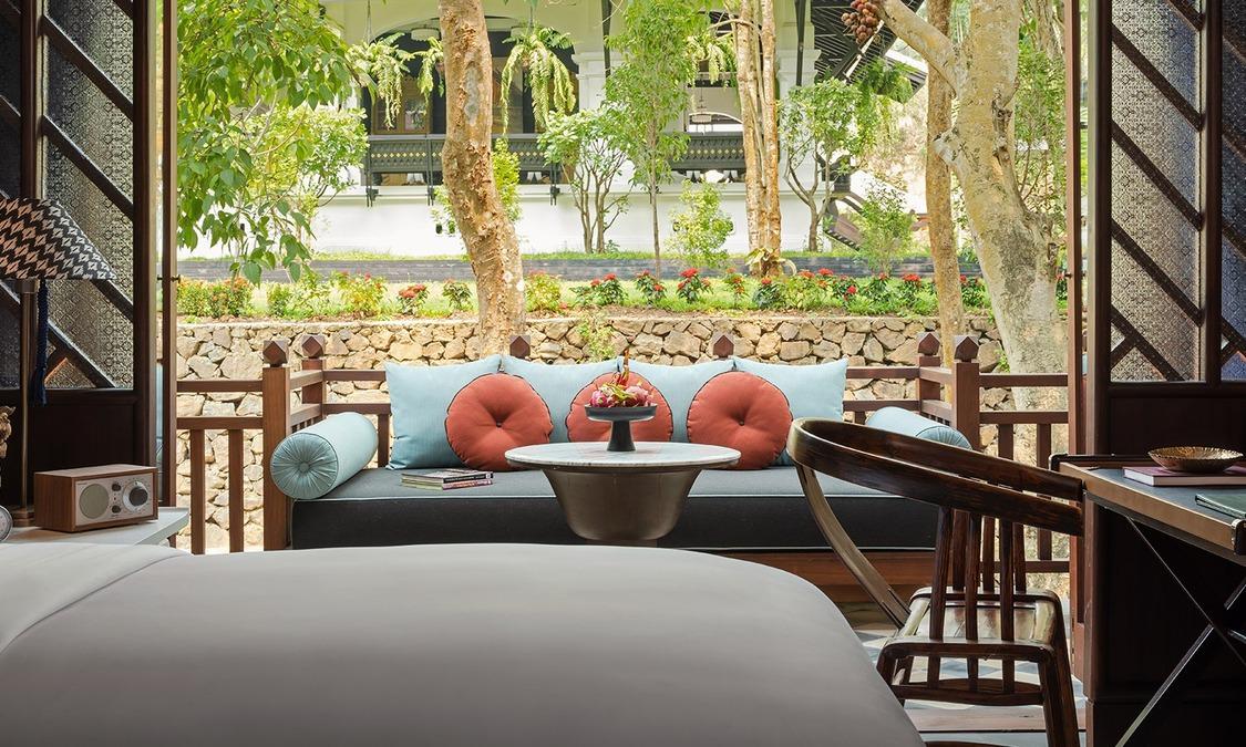 琅勃拉邦瑰丽酒店共建有八座豪华别墅、三座花园别墅、六座泳池别墅及五座豪华帐篷式别墅。设有独立用餐区及甲板、面积达100平方米的豪华帐篷式别墅更为瑰丽首创先河。每一座别墅各呈独一无二之姿,同时又以划一主题贯穿其中;无论是设计或建筑,以至采用当地独有原材料及以本地艺术品点缀室内空间,均渗透出丝丝老挝传统元素及法国殖民地风格。