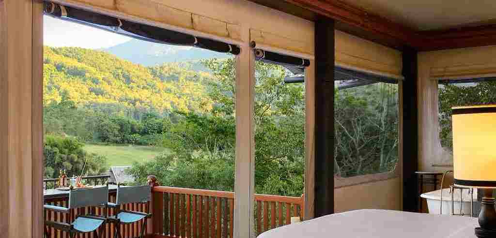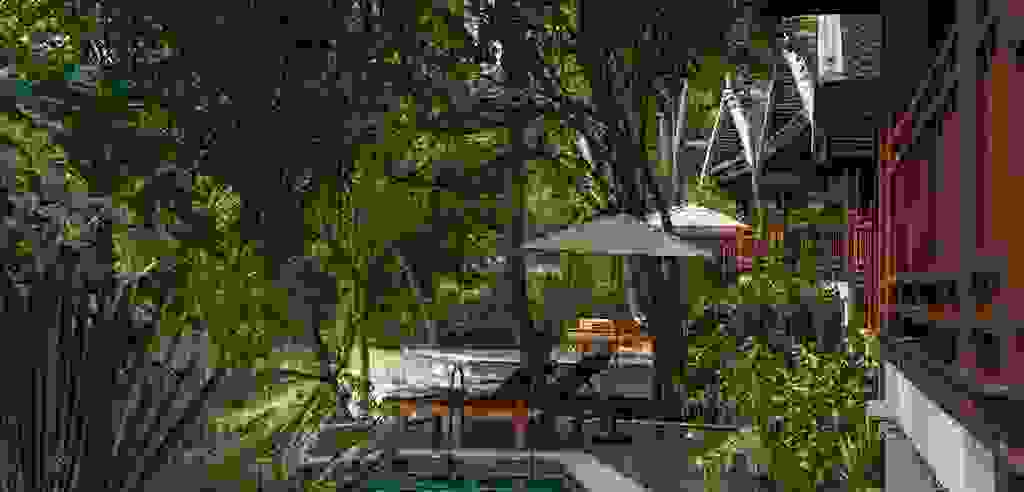 环抱该度假酒店的四周乃茂密树林及潺潺流水,更有浑然天成的瀑布于咫尺之外。酒店内将有22座宽敞别墅沿河岸而建,设有露天的卫浴及客厅等设备,设计旨意鼓励宾客忘却繁嚣,尽情投入宁谧的大自然。