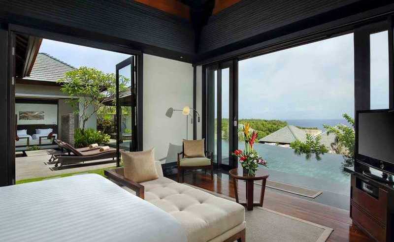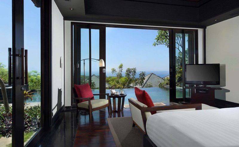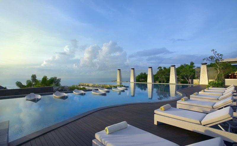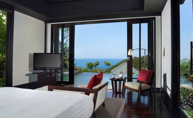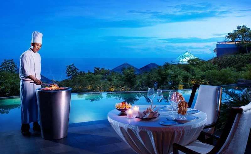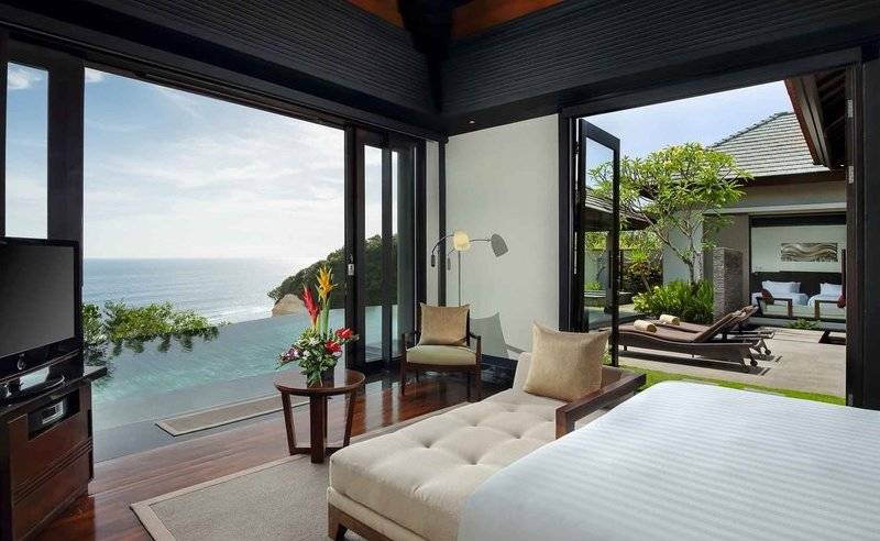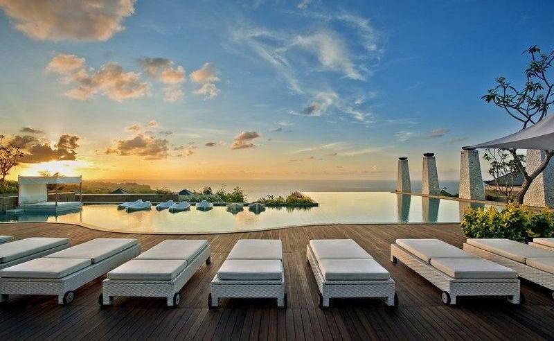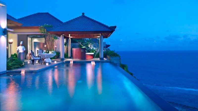 Banyan Tree Ungasan Bali(巴厘岛悦榕庄),是一所全泳池的豪华别墅度假村,坐落在巴厘岛最南端靠近乌鲁瓦图寺的悬崖上,靠近努沙杜瓦海滩,距离金巴兰湾约10分钟车程,地理位置优越。洁白的海滩、湛蓝色的水域、浮光跃金的印度洋及富有神秘气息的岛屿风光,构成一幅如诗画卷,定能让您沉醉不已。 在诸神之岛 - 巴厘岛感受令人无法抵抗的私密魅力。乌干沙悦榕庄实践了 Bali Dwipa Jaya(译作“华丽巴厘岛”)的岛屿信条。投身于世外桃源般的乌干沙悦榕庄,告别紧张忙碌的生活节奏,寻觅难得的放松与舒缓,亲身领略独具特色的巴厘风情元素与岛屿优雅迷人的环境完美融合。几世纪以来,世人经常将榕树荫下作为寺求心灵回归不内在平静的处所。悦榕象征着大自然所赋予的放松不舒适,作为该集团第一家在悬崖上的酒店,乌干沙悦榕庄坐拥得益于悬崖视角之上的绝佳印度洋与纯净天空的视角,洁白海滩、让人振奋而又无可挑剔的蓝色海域以及金色阳光,构成了完美惊艳的婚礼背景。乌干沙悦榕庄作为世界奢华别墅度假酒店,早已成为巴厘岛上的明星酒店。也是许多明星名媛选择的婚礼场所,当红演员陶昕然与何建泽在去年在悦榕庄的白鸽教堂举行了婚礼。包含起居室和用餐区、宽敞的大理石浴室、郁郁葱葱的私人花园和一座室外按摩池。走出卧室,来到属于您的10米长无边泳池,纵然一跃,立感心旷神怡;抑或选择在私人巴厘岛式凉亭内闲坐,彻底放松身心。240平米的单房式别墅配备花园,可饱览壮美海景