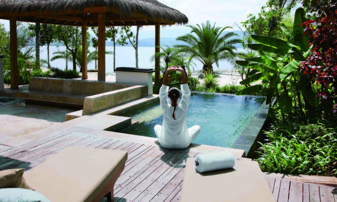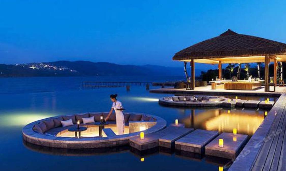 柏联精品酒店位于昆明高原湖畔,这里四季阳光明媚,繁花似锦。浓郁的中国传统文化和云南独特的地域文化相融合,有着个性非凡的魅力。酒店建在一个背山临湖的坡地上,被茂盛的植被和树林所掩映,随形就势顺着山坡呈降落式布局、带茅草顶的别墅群如同长在森林中的蘑菇,自然生长的茂密植物在每一幢VILLA之间形成一道绿意盎然的屏障,有非常好的私密空间。发呆亭里尽览湖光山色,随时可在飘浮着新鲜玫瑰花瓣的温泉池享受鲜花浴。