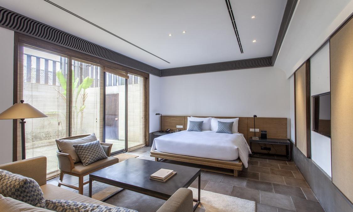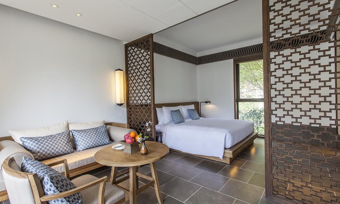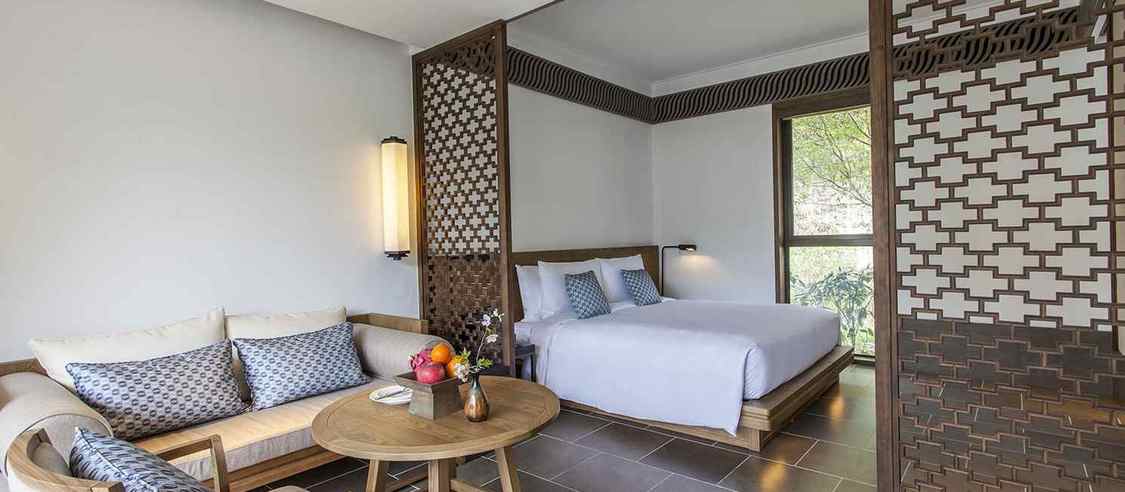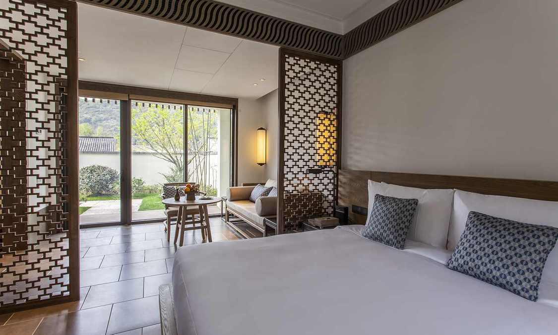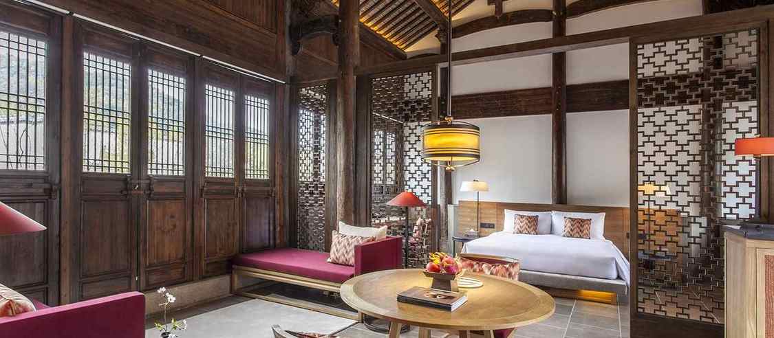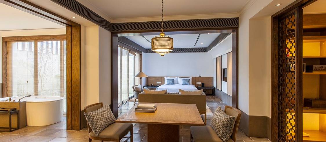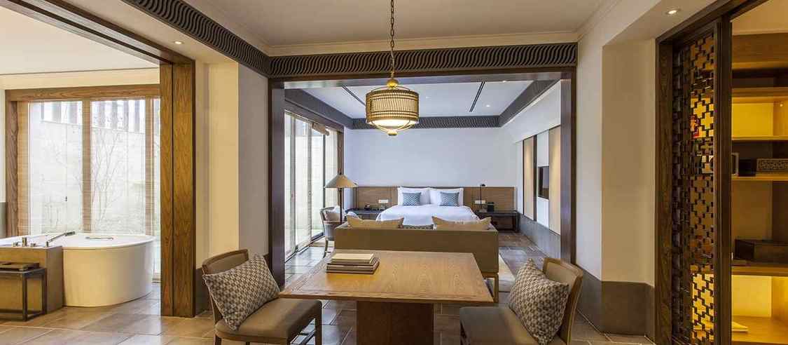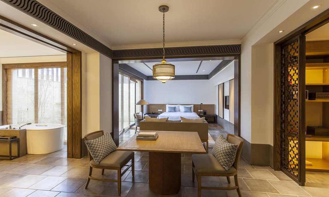 兰亭安麓受中国著名大书法家王羲之创作的《兰亭集序》启发而得名,选址在绍兴市会稽山,占地9.2公顷,由古朴典雅的徽派建筑群组成。 兰亭安麓花费数年整饬古旧徽派建筑,由当代最杰出的室内设计大师Jaya Ibrahim先生主持室内设计。在保留了原貌独特风格的基础上进行了创意性改造,使得其性能与设施有了极大提高又保 留江南风情,将传统黛瓦融于连绵山水,使您能透过不同视角来感受兰亭安麓的媲美风光。