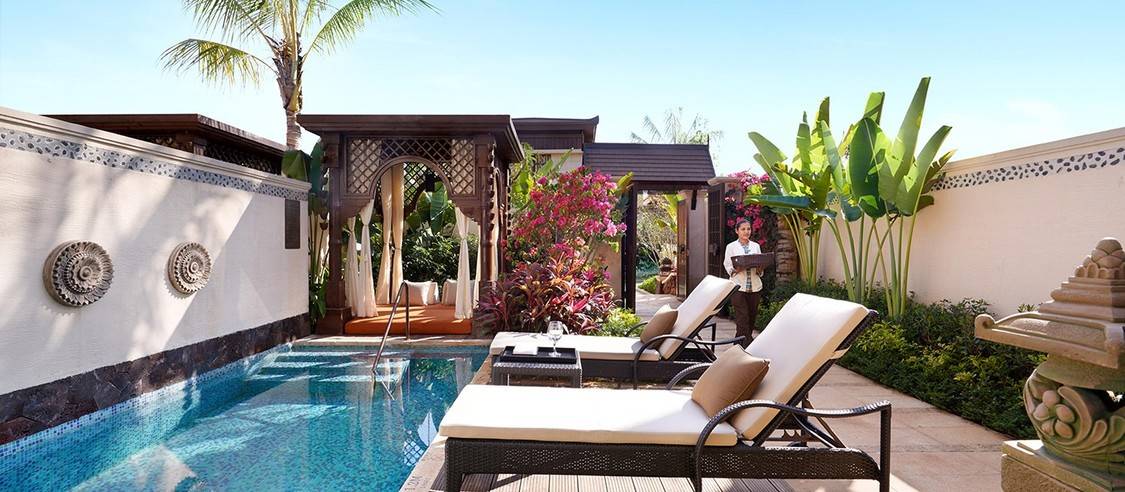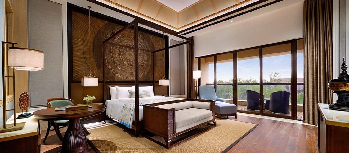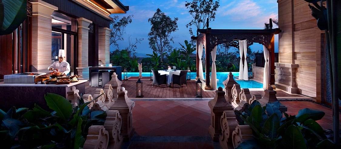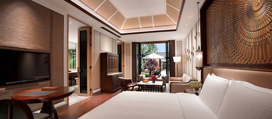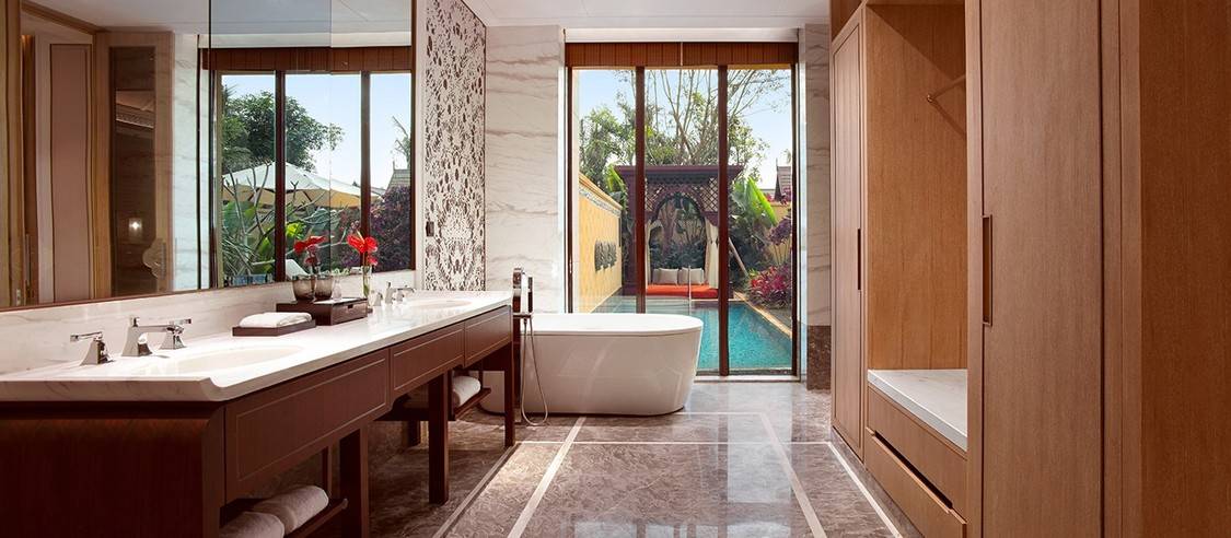西双版纳万达文华度假酒店坐落于景洪市万达国际度假区,是万达酒店及度假村首家度假酒店。距西双版纳嘎洒国际机场仅15分钟车程,地理位置优越。酒店拥有151间典雅舒适的联排别墅客房和尊贵的别墅套房,客房总面积137平方米起,均配备私人泳池、花园及露台。多间风格各异的餐厅及红酒雪茄吧为宾客呈献无与伦比的特色餐饮体验。酒店还设有高端会议场地、水疗中心、儿童乐园及一应俱全的健身设施,诚邀宾客开启一场舒适、精致、尊贵的曼妙之旅。
