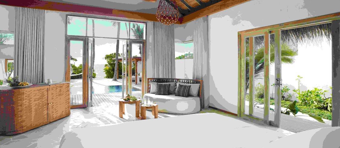 费尔蒙斯茹芬富士度假酒店 Sirru Fen Fushi ,作为马尔代夫新晋入门度假村岛屿,是一个全新值得期待的6星级度假村, 位于Shaviyani沙维亚尼环礁北部约230公里处,是一个原始的自然海洋环境,不受开发的干扰。该岛占地约160000平方米(16公顷),周围环绕着600公顷的泻湖的美丽和宁静的水域,拥有马尔代夫最大的泻湖,共120套豪华别墅 ,每一栋度假别墅都提供带私人泳池,3个餐厅和3个酒吧。整个度假村的设计风格非常的清新透亮,值得期待!
