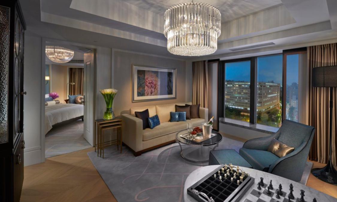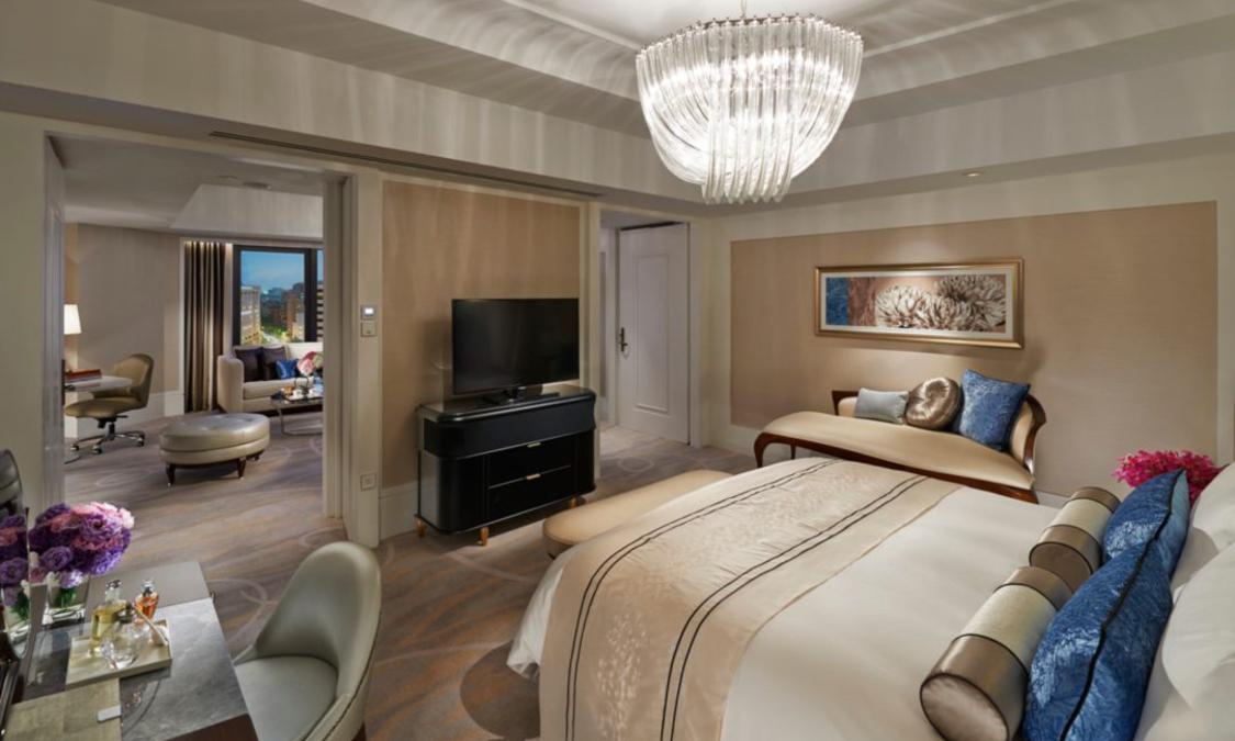 【休闲度假】气派豪华的总统套房及文华套房面积达400平方米,并备有房内私人水疗设备与健身间,尽显极致奢华。