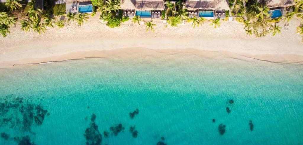 占地140英亩的度假村,仅有26栋别墅,其中21栋位于海岸,4栋在山林,还有一栋最具岛主风范的6卧奢华别墅被安排在海边视野最好的方位,坐享连天海景。每一栋别墅都面朝大海,大气的落地窗设计,蓝天碧海尽揽于怀! 室内建筑遵循当地传统风格,设计同时融入现代化元素,房间开阔,色调淡雅,风格清新,轻奢主义者绝对一见倾心。 Kokomo私人岛不仅是斐济奢华酒店的代表作之一,而且还是著名的SLH全球奢华精品酒店联盟成员之一。