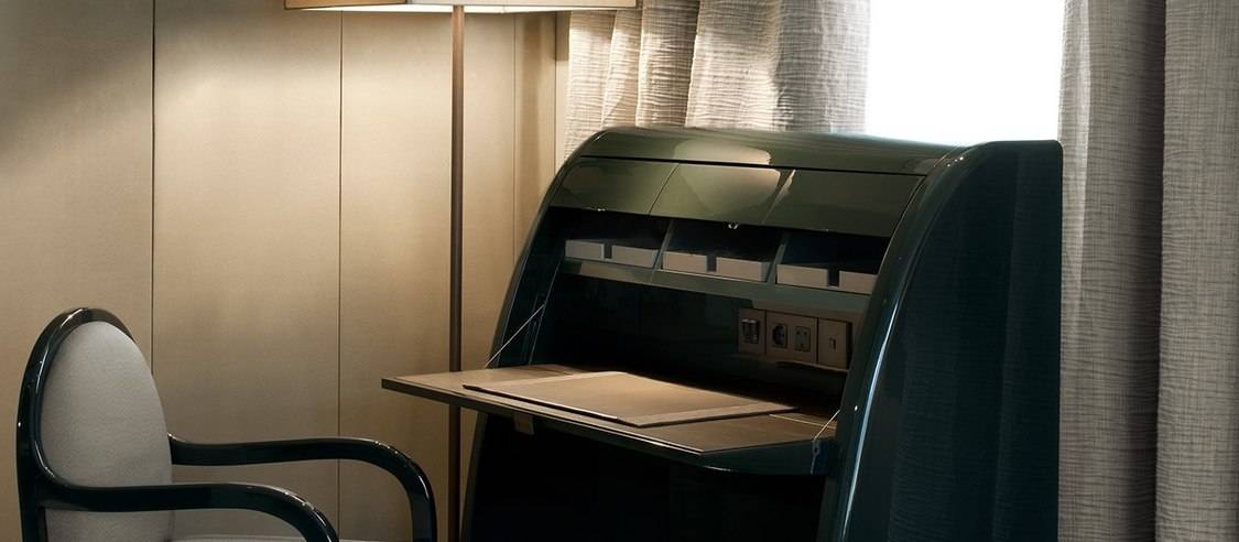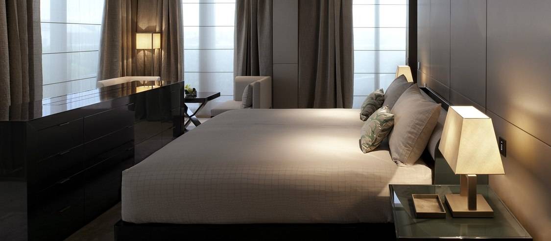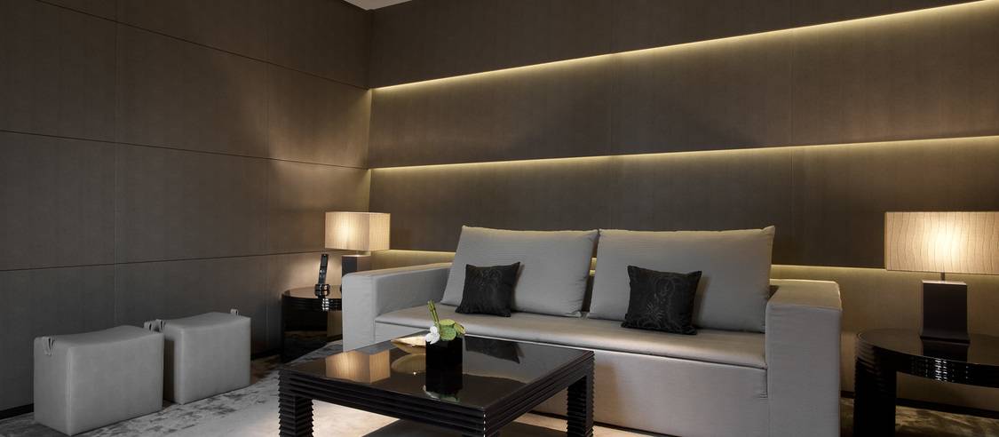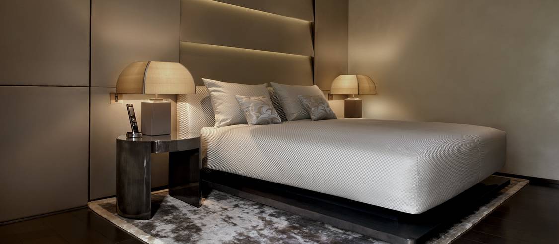 酒店内的所有室内陈设都采用了Armani/Casa系列的标志性设计理念,在一系列珍贵装饰上进行了专门设计,从优雅线条型沙发,到采用背光设计的木质床头,以反映这座宫殿似套房的年代感。