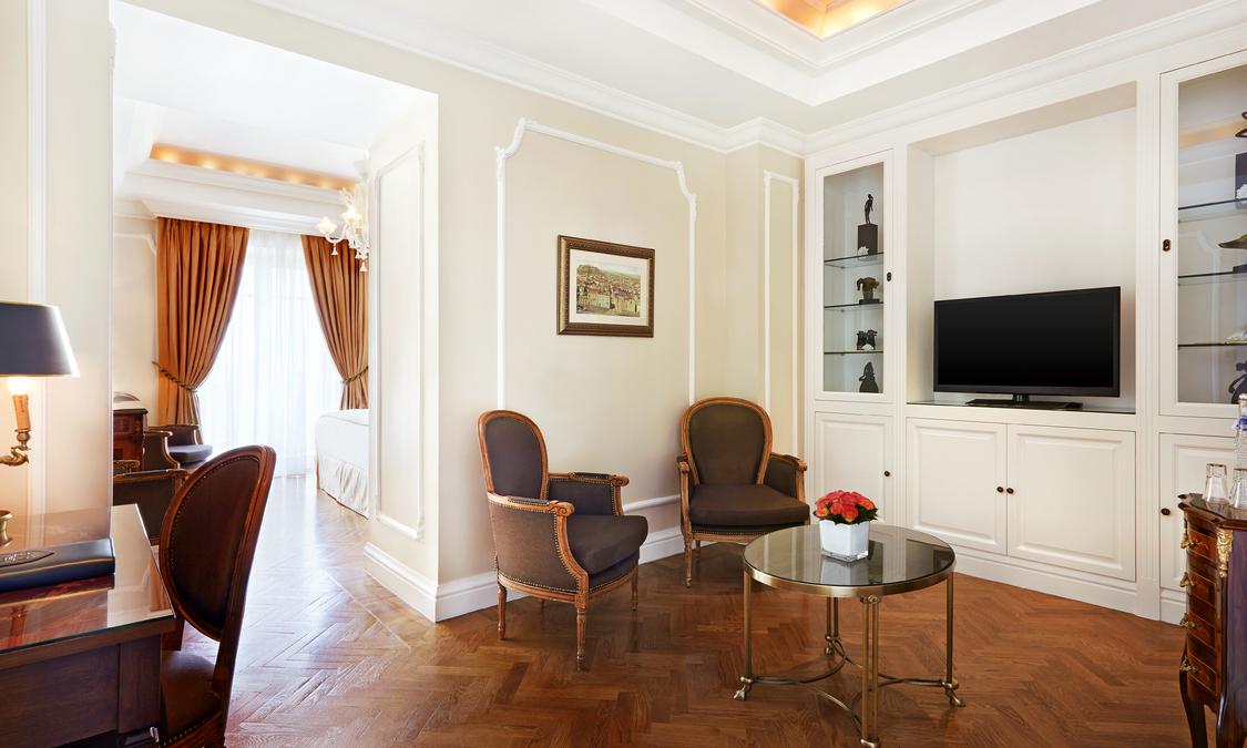 酒店处于历史悠久的宪法广场,坐落于议会与Voukourestiou Street街之间,以新古典主义的外饰为特色,拥有特色餐厅、健身中心和会议设施。每间客房均装饰豪华,配备精选摆件和枝形吊灯,均可通向面朝雅典卫城或内庭院的阳台。浴室提供浴袍、拖鞋和洗浴用品。