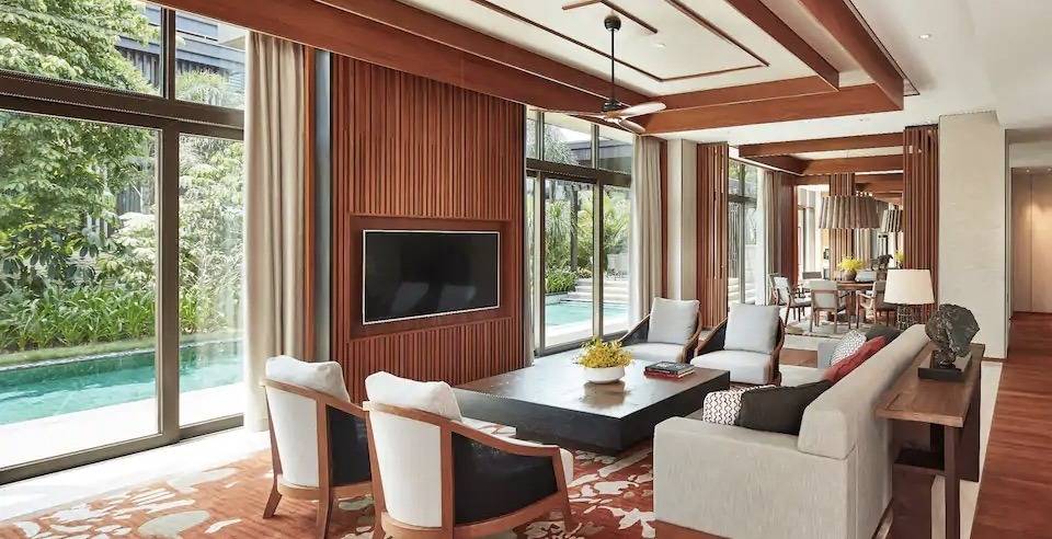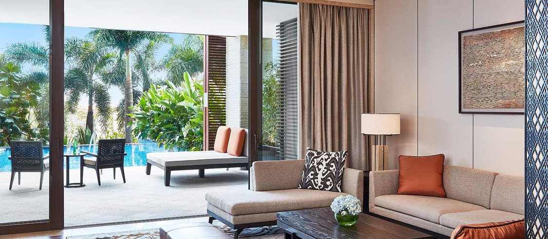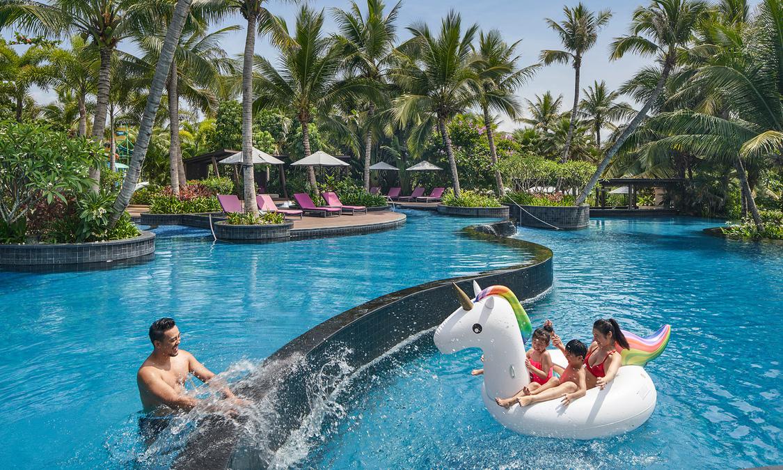 偎水而构建,环村而居,当代的时尚风情与古老疍家渔村的结合在这里沉浸于恬适雅致的现代氛围,亦或体验本地原住民俗、品尝新鲜海味南海之滨,且听风吟坐落国家海岸之上,隐匿热带园林之间听涛浪拍岸鸟语蝉鸣,观瀚海沉壁暖阳普照,迎朝霞送夕晖舒缓之间,且听风吟,趣意尽显静憩之所435间舒适典雅客房 | 包含30间海景套房 | 及8幢私密别墅从阳台远观优美园景或壮丽海景远离喧嚣,独享静谧一隅私属空间,品味舒适典雅玉盘珍馐海天为幕,以味传神精湛技艺,传承君悦卓越餐饮体验融汇中外,著名设计师傅厚民先生缔造惬意用餐空间咖啡厅——自助式开放厨房,供应丰盛的自助早餐和美味晚餐愉村——提供精美粤菜、每日新鲜捕捞的海鲜以及海南地道美味池畔烧烤餐厅——可享用现烤上等牛排和各式海鲜大堂酒廊——小酌轻食,度过惬意的时光的理想之选泳池吧——尽览无边泳池及周边景致的同时,畅饮冷饮品尝小食悦吧——夜幕降临,畅饮一盏鸡尾酒,眼观万顷碧波,耳听涛涛海潮乐享天伦探索悦趣营900平方米的室内外儿童专属空间内设活动中心、小厨师厨房室内丛林探险以及树屋寻宝探秘等缤纷趣味活动给予孩子更多探索的机会嬉水空间悦趣池 - 儿童专属,备有滑梯和喷水器等娱乐设施悦君池 - 冬日恒温,可欣赏环绕于四周的优美风景,尽享水中嬉戏之乐悦亲池 - 家庭优选,定期组织的娱乐活动,将为您带来难以忘怀的家庭时光焕采悠然惬意假期,置身水疗庭院体验专业身体护理,唤醒内在重燃活力滋养肌肤,复苏身心逸致闲情悦乐屋欢乐时光悦乐屋内设赛车类、音乐类、礼品类以及休闲类等四种不同类型的电玩设施健身中心挥汗塑形独揽壮丽海景的同时配以Technogym品牌专业器械专属练功房开设反重力瑜伽和舞蹈课程另有贴心土耳其浴,感受云蒸霞蔚般的呵护放松更多户外活动瑜伽、太极、国际象棋、沙滩足球水上排球及沙滩排球、海滩风筝活力有氧运动、水上运动、自行车骑行