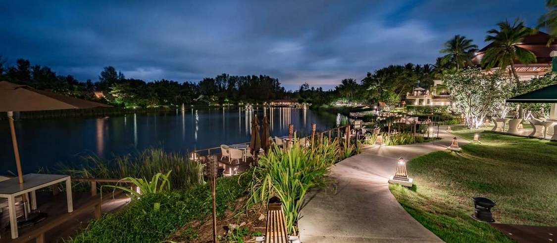 沉醉于这片包罗万象的迷人土地,享受阳光明媚的沙滩、清澈纯净的海水和色彩绚烂的天空,尽情呼吸弥漫着幸福气息的空气。 探访安达曼的无上之宝 - 普吉岛。 普吉岛悦榕庄环绕着咸水泻湖浮光跃金的水域,堪称一座宁静祥和的休憩圣殿,是畅享完美假期的绝佳布景。 走进隐逸于普吉岛乐古浪的普吉岛悦榕庄,在这个隐秘之所体验童话般的热带天堂,道路两旁生长着木麻黄和棕榈树,田地里绽放着色彩绚烂的黄蝉花,更有邦涛湾碧蓝色的海水闪闪发光,不胜迷人。